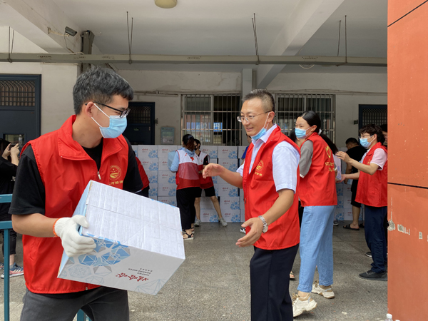 巖土部地質(zhì)院的2名青年志愿者和江河公司的9名青年志愿者,在聽(tīng)到河南省人民醫院和21世紀社區有外地支援物資到達,急需周邊志愿者幫忙卸貨的消息后,迅速趕往現場(chǎng)參與志愿行動(dòng),齊心協(xié)力搬運各地來(lái)豫的應急救援物資,助力防汛救災志愿服務(wù)行動(dòng)。