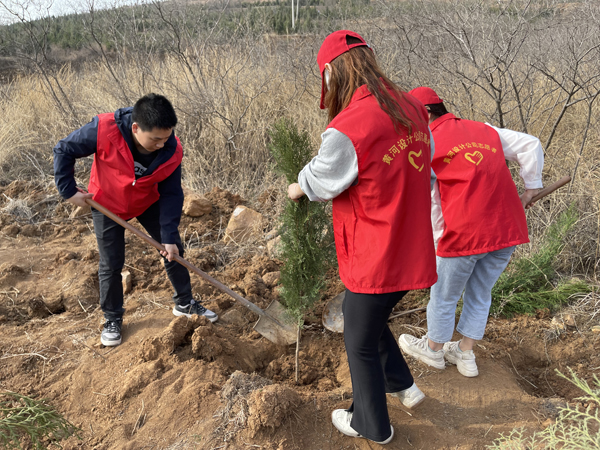 青年志愿者們抵達基地后,就立即拿起鐵鍬、揚鎬、水桶等工具,在省直綠化辦、省直文明辦工作人員的指引下,步行前往集中植樹(shù)點(diǎn),迅速忙碌起來(lái)。大家齊心協(xié)力揮鍬鏟土、扶苗培土、提水澆灌,很快便在指定區域按照植樹(shù)要求,接連種下一顆顆側柏、油松等,現場(chǎng)氣氛熱烈,一片熱火朝天景象。